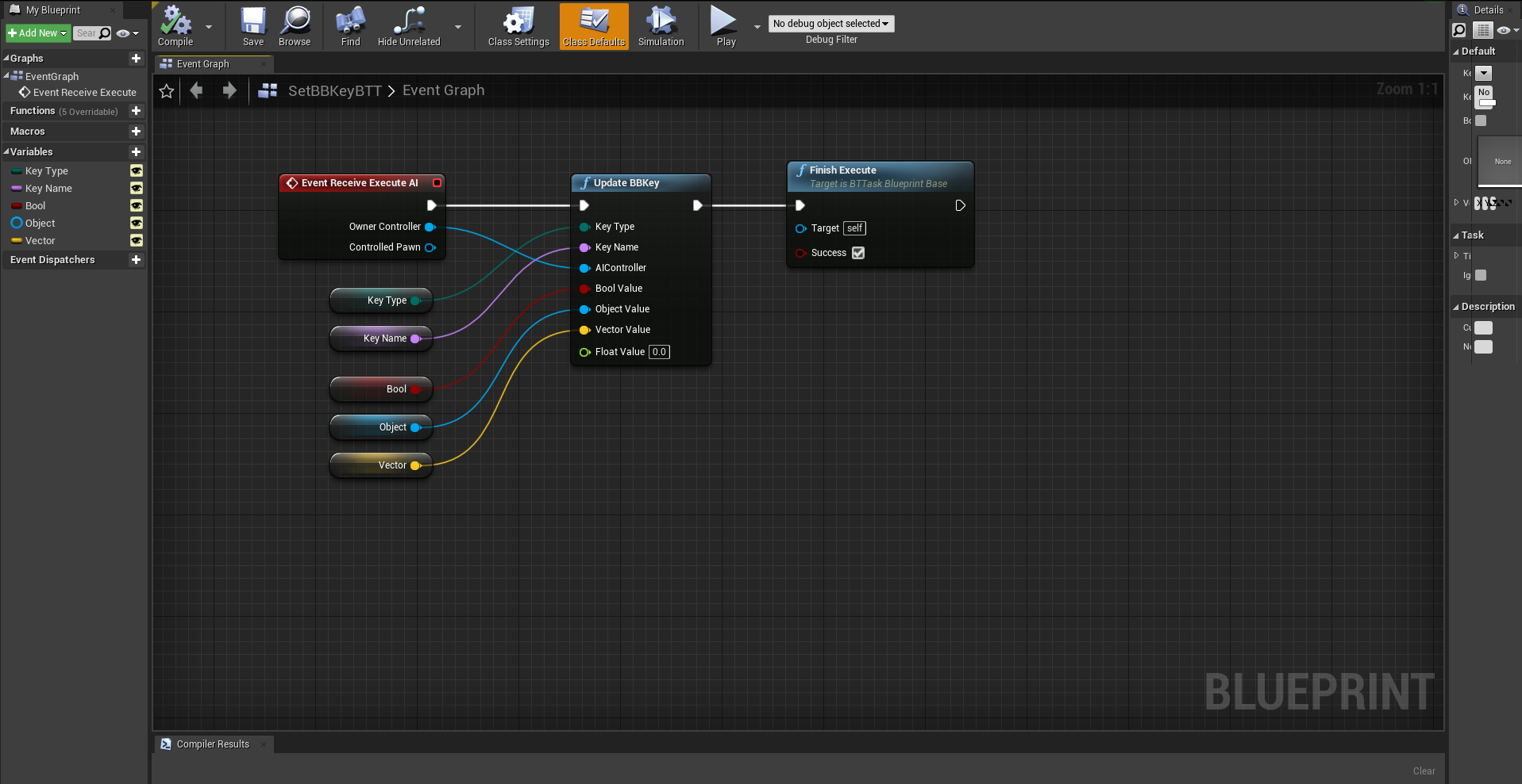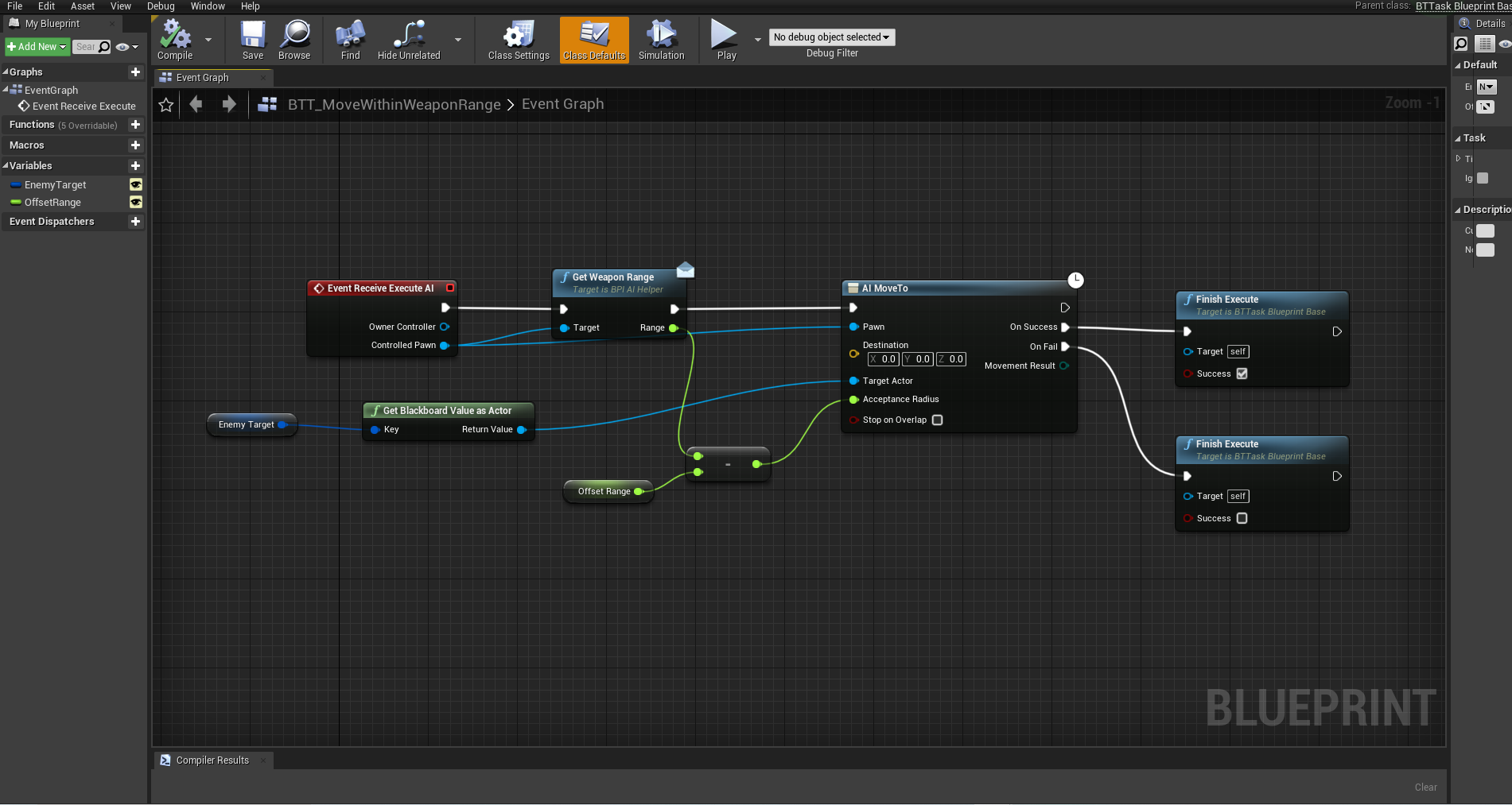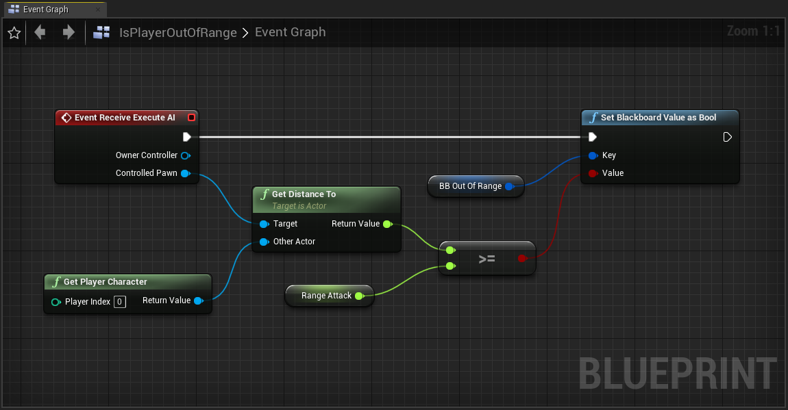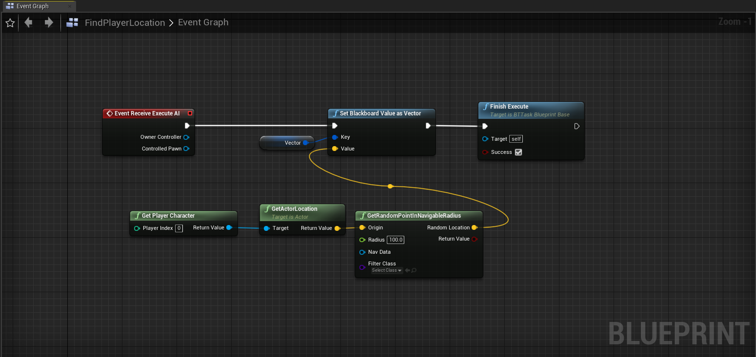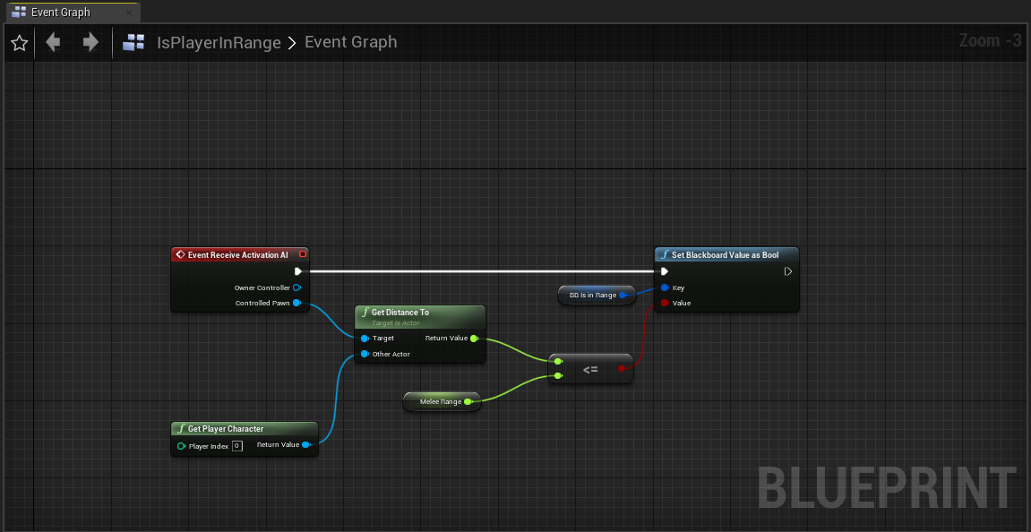 The Enemy Behavior Blackboard holds all of the variables that are needed for the Behavior Tree to function. The Blackboard has been described as the “brain” that allows the Behavior Tree to function.