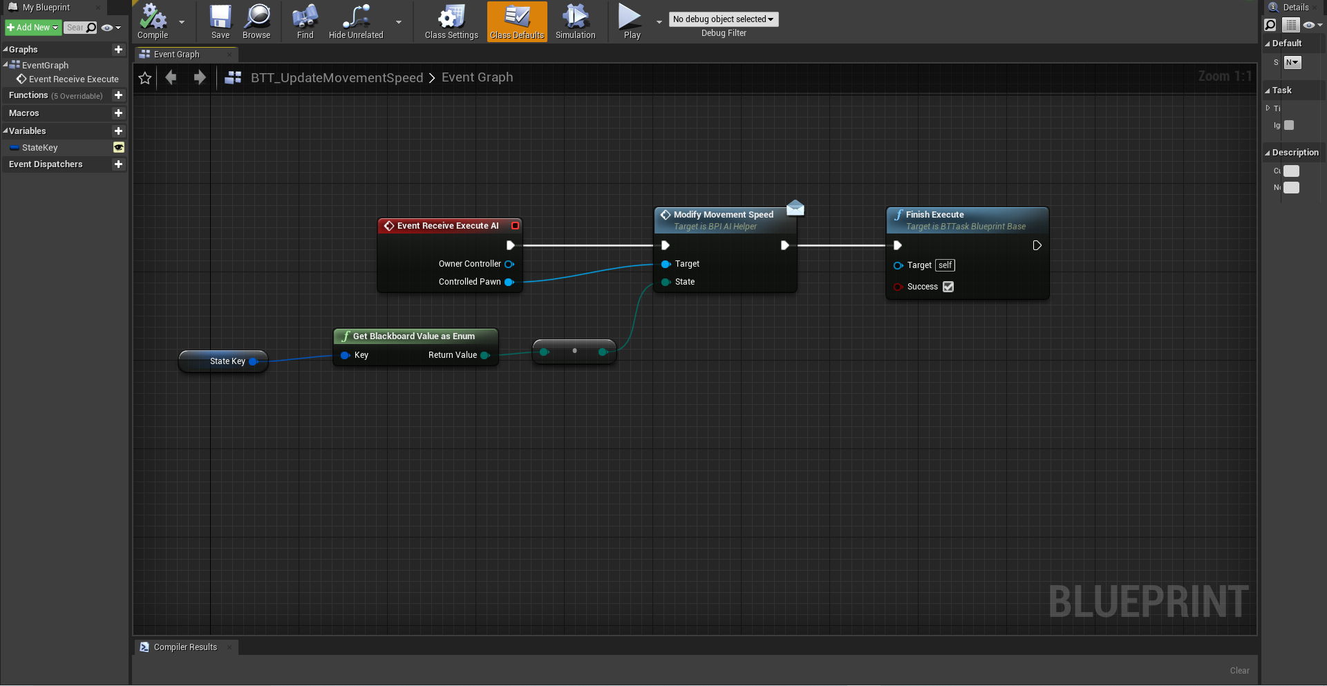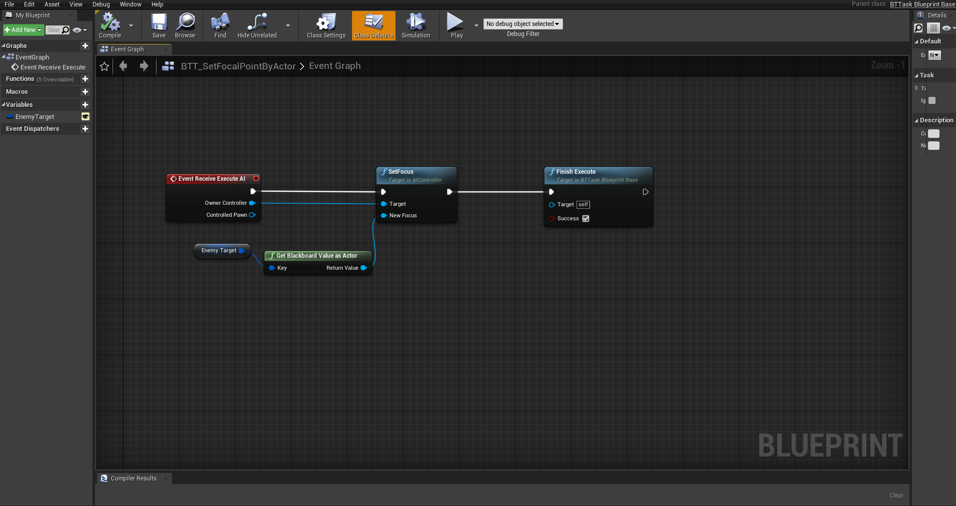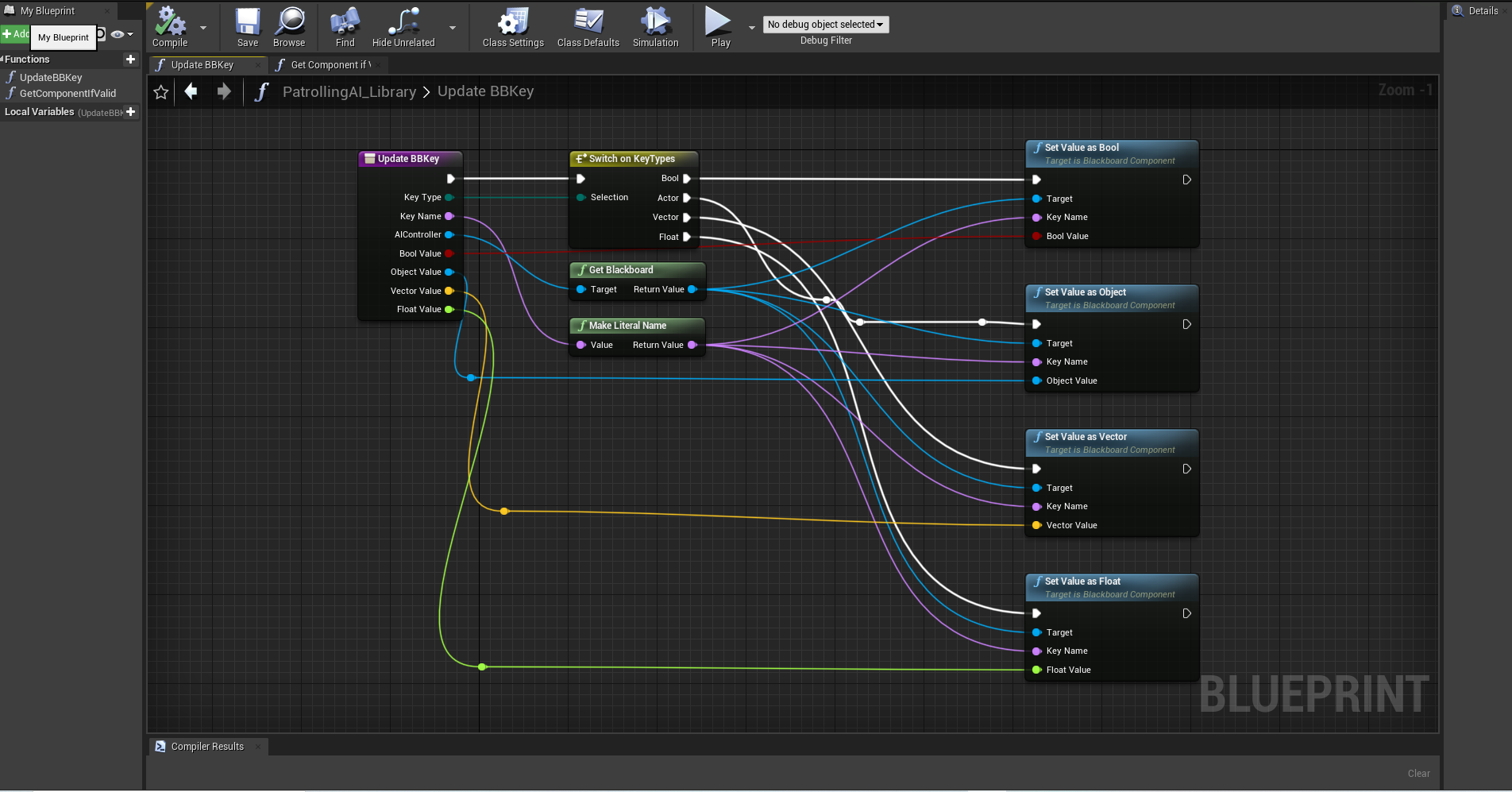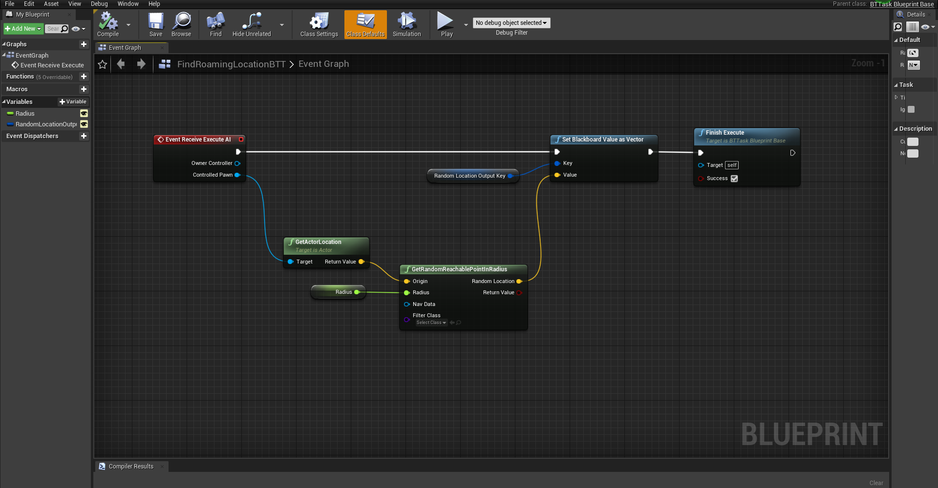 The Enemy Behavior Blackboard holds all of the variables that are needed for the Behavior Tree to function. The Blackboard has been described as the “brain” that allows the Behavior Tree to function.