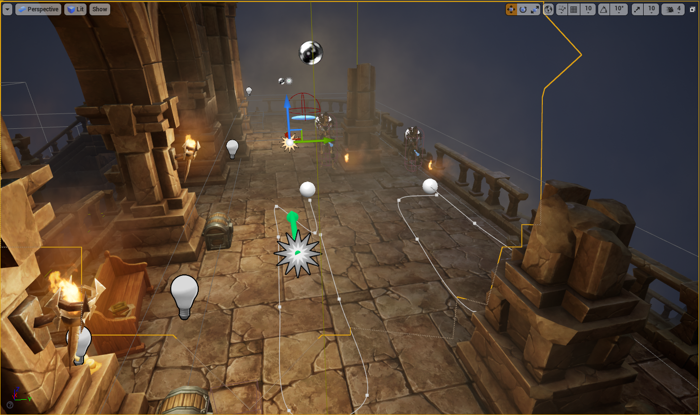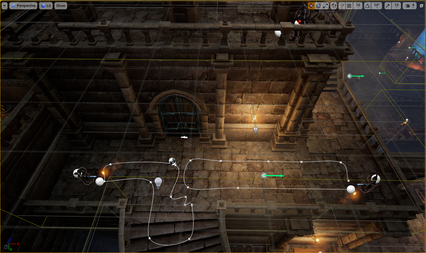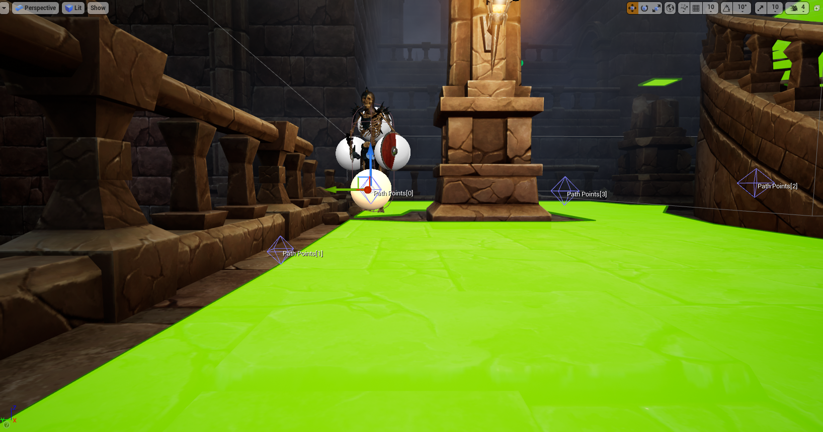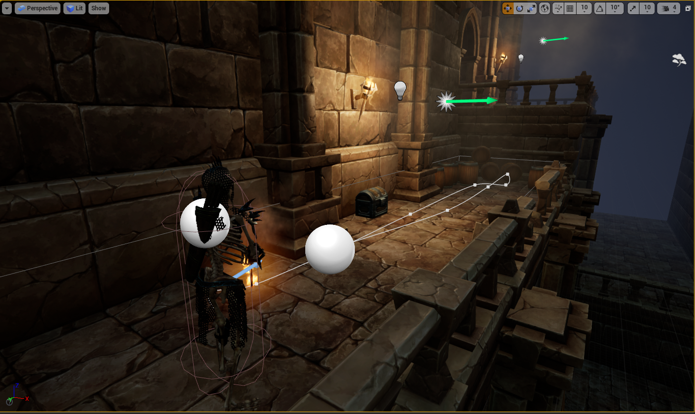 For the Skeleton Archer, I decided to use a spline point system to design and develop the ability of the Skeleton Archer AI to patrol along a certain route. I felt that Skeleton Archer needs to be able to move in curved patterns and loops to give the Skeleton Archer a more natural feel.