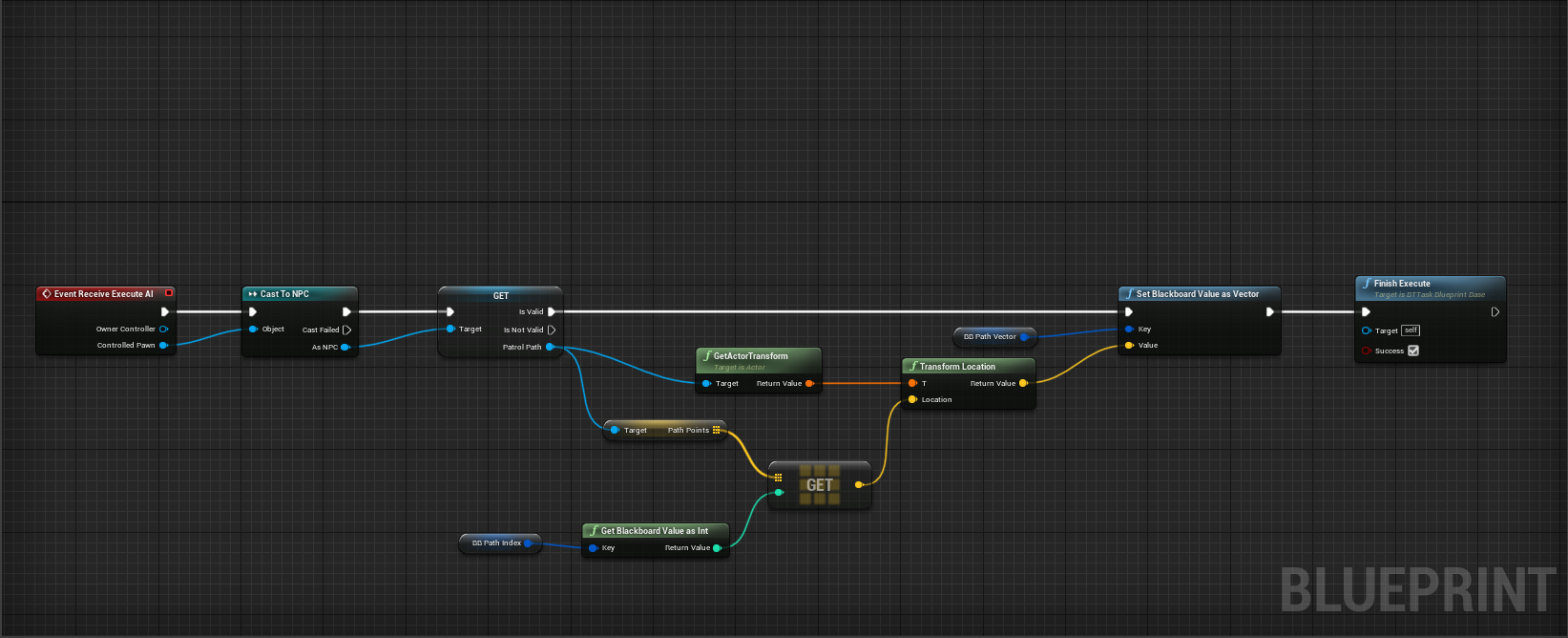 To allow the Enemy AI for the Undead Knight and Skeleton Warrior to have patrol paths that would appear to be more routine like a typical soldier in a planned path, I decided to use a system based on vector coordinates that can be stored in a Vector array, allowing the Enemy AI to increment or decrement along the patrol path. This allows patrol paths to be constructed in more rectangular shapes or in other patterns that allow the Enemy AI to navigate from each Vector point in the array.