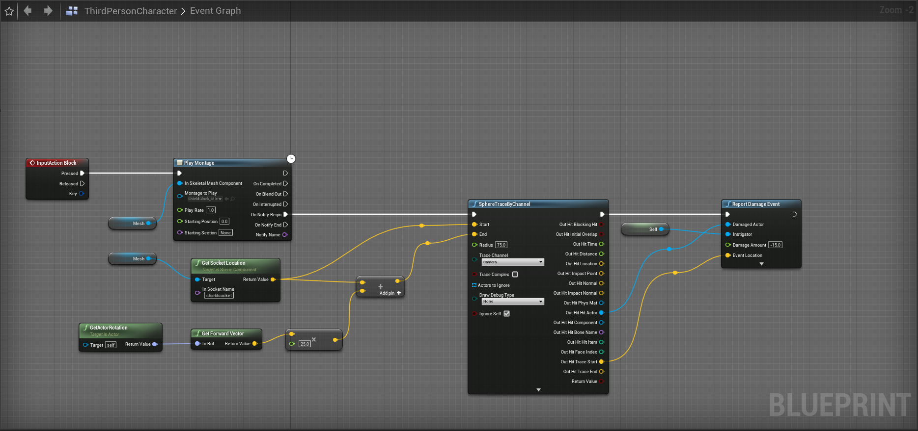 To provide our Adventurer with an attack and block for facing the horrors of the Beholder’s Lair, I had to retarget the static mesh and I had to retarget animations for the character. I then had to adjust the character’s animation blueprint, and set up montages that can be played on user input in the prototype.