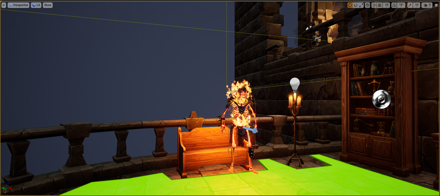 The Skeletal Mage is the first range-based enemy that attacks with fireballs and has the ability to teleport closer to player. A future goal is to have the Skeleton Mage cause fire damage within a certain radius when the Skeletal Mage is within proximity to the player. To achieve the teleportation ability of the Skeletal Mage, the Environment Query System (EQS) was used to create a grid point system in which the Skeletal Mage can teleport within.