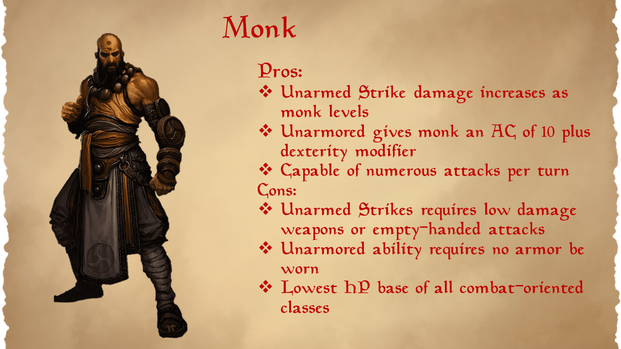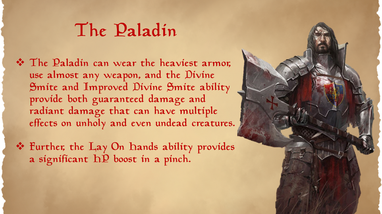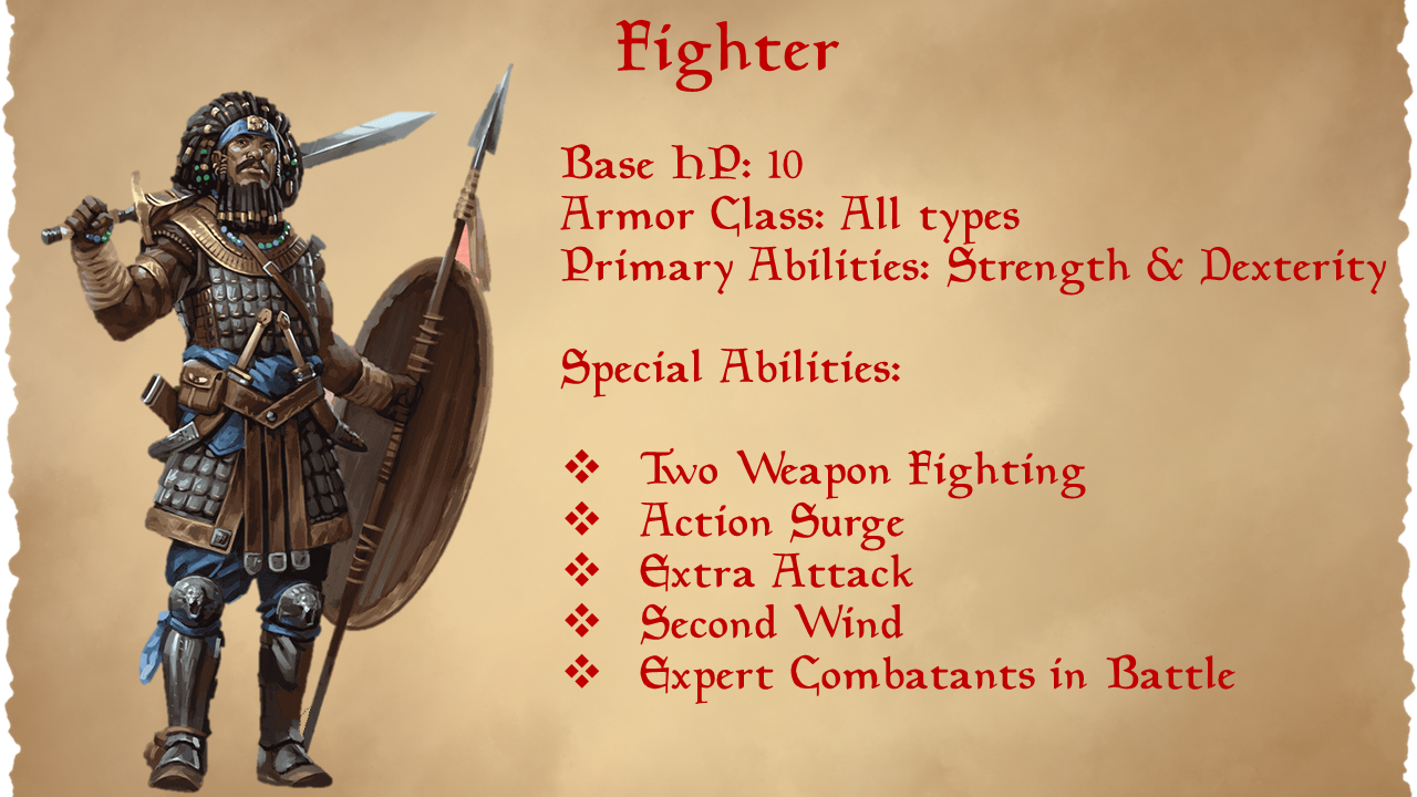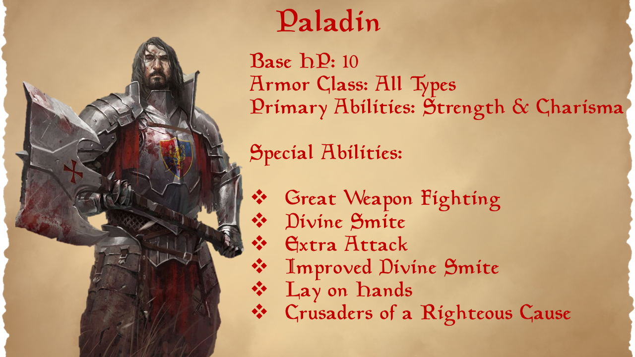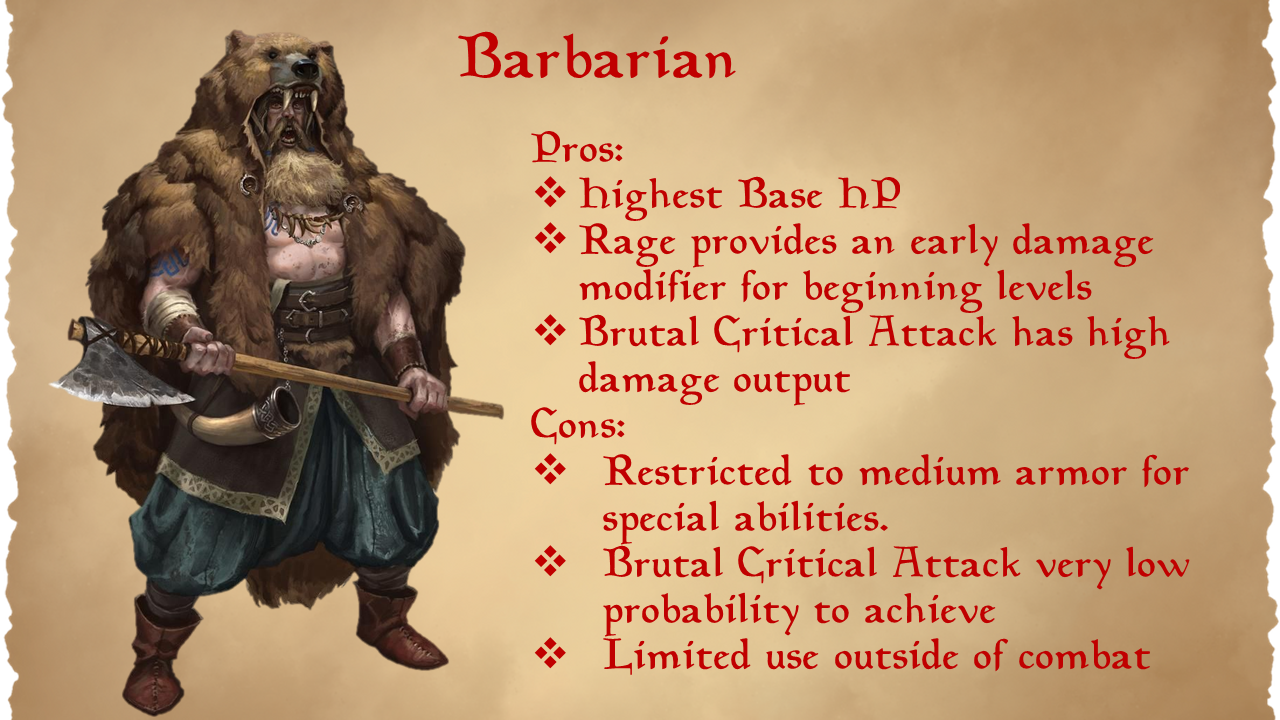This Class Comparison Compendium was an assignment while I was at FIEA in Game Design II. The purpose of the Assignment was to create a mathematical model representing an analysis of a game system. For this assignment, I decided to compare the four primary fighting classes the Barbarian, the Fighter, the Paladin, and the Monk. My goal was to analyze for one attack, which class at the highest damage potential based on class, character stats, level, and class special abilities. Below, you can the presentation and a discussion of the spreadsheet I designed.