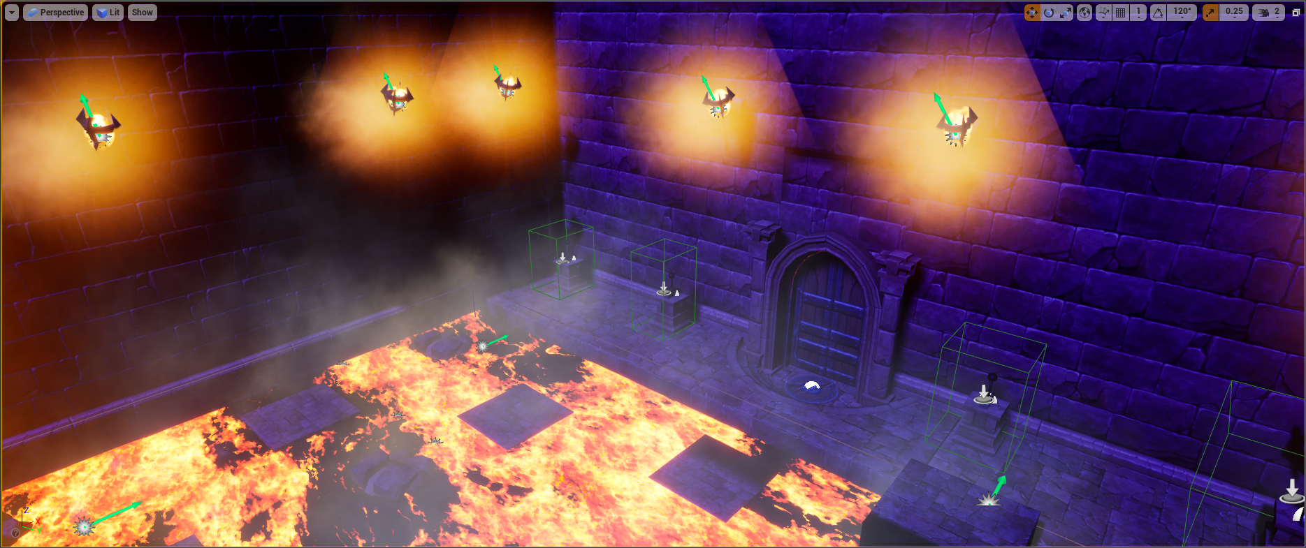 To help develop a dungeon with consequences, I developed a lava material instance to make the final puzzle room feel more dangerous with a lava floor.