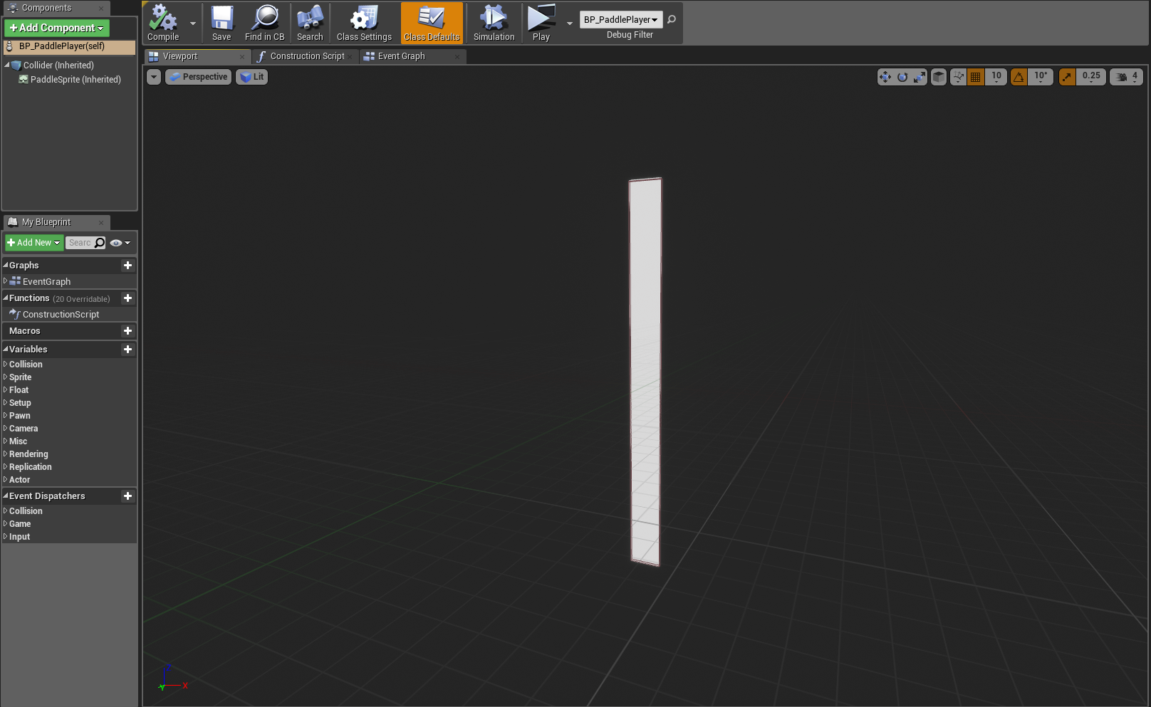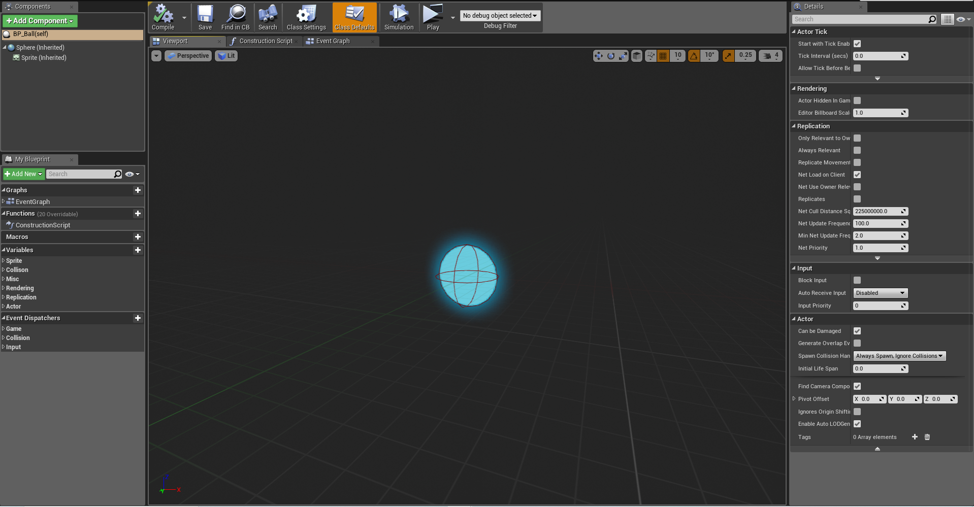 The Ball Actor is composed of Collison Sphere and a 2D Sprite. This helps to the classic arcade feel.