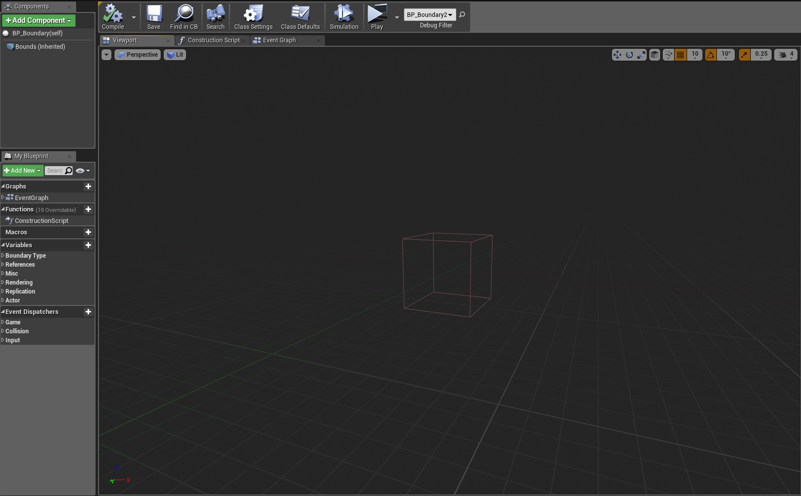 The Boundary Actor is composed of an inherited Box Collision that will create the bounds for the game UE4 Pong.